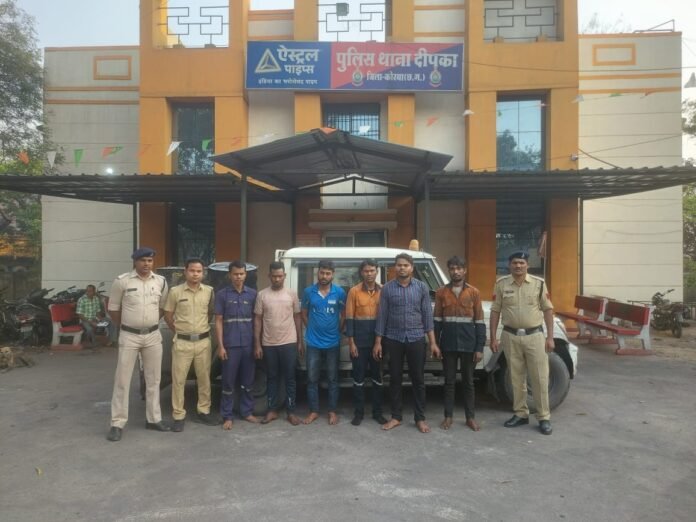 छत्तीसगढ़/कोरबा :- मामला का संक्षिप्त विवरण इस प्रकार है कि SECL क्षेत्र में डीजल चोरी पर अंकुश लगाने हेतु पुलिस अधीक्षक कोरबा सिद्धार्थ तिवारी (भापुसे), अति पुलिस अधीक्षक कोरबा यूबीएस चौहान के द्वारा अंकुश लगाने हेतु समस्त थाना प्रभारीयो को कड़े निर्देश जारी किये थे जो नगर पुलिस अधीक्षक दर्री श्री रविन्द्र कुमार मीना के मार्गदर्शन में थाना प्रभारी दीपका के द्वारा गेवरा खदान क्षेत्र में डीजल चोरो के संबंध में SECL से प्राप्त शिकायत पर कार्यवाही करते हुए 06 आरोपी को पकडा।