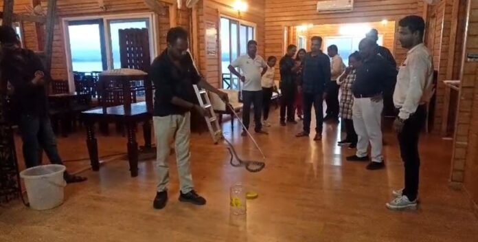 छत्तीसगढ़/कोरबा :- छत्तीसगढ़ राज्य के कोरबा जिले में स्थित सतरंगा पर्यटन स्थल में उस समय लोग डर से कांप गए जब कैंटीन में लगे AC में एक अजीबों गरीब सांप दिखाई दिया, यहां प्रति दिन के भाती लोग खूबसूरत नजारे को निहारने के साथ आनंद के लिए पहुंचे थे और रेस्टोरेंट में खाने के लिए बैठें थे तभी कुछ पर्यटकों की नज़र एसी में पड़ी तो लोग खाना तो दूर उस जगह से बाग खड़े हुए फिर इसकी जानकारी वाइल्डलाइफ रेस्क्यु टीम प्रमुख जितेंद्र सारथी को दिया और बताया गया की एक अजीबों गरीब दिखने वाला सांप सतरंगा पर्यटन स्थल के कैंटीन में AC बैठा हैं जिसके कारण पर्यटन डरे हुए हैं जिस पर जितेंद्र सारथी ने थोड़ी देर में टीम को भेजने की बात कही तब तक नजर रखने को कहा साथ ही दूरी बनाए रखने को भी कहा आखिरकार कुछ घंटों बाद रेस्क्यु टीम के सदस्य राकेश और राजू सतरंगा पहुंचे और बड़ी सावधानी से सांप को AC से बाहर निकाला साथ ही सभी को बताया गया कि यह सांप common cat snake हिंदी में सामान्य बिल्ली सांप कहते हैं फिर सुरक्षित रेस्क्यू किया गया तब जाकर लोगों ने राहत भरी सांस लिया और रेस्क्यु टीम का धन्यवाद ज्ञापित किया , जिसके बाद उसे जंगल में छोड़ दिया गया।