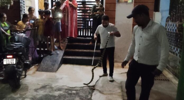 कॉलोनी के बीचों बीच पहुंचा अहिराज सांप, लोगों ने कहा दिखता सुंदर हैं पर देख कर डर भी लगता हैं, जितेंद्र सारथी ने किया रेस्क्यु