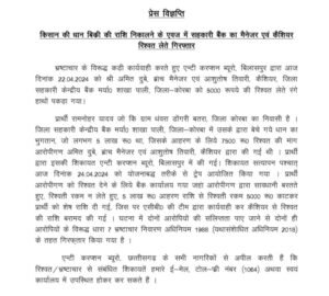 इनमें से ही एक किसान जिसे उसके बेचे गए धान के बदले रुपए की आवश्यकता लाखों में थी और बैंक के द्वारा किसानों से मजबूरी का फायदा उठाते हुए कमीशन लेकर रुपए दिए जा रहे थे। पीड़ित किसान प्रार्थी रामनोहर यादव ग्राम धंवरा डोंगरी बतरा से लगभग 5 लाख रूपये, के आहरण के लिये 7500 रूपये रिश्वत की मांग की जा रही थी। आरोपीगण अमित दुबे, ब्रांच मैनेजर एवं आशुतोष तिवारी, कैशियर द्वारा मांग की गई थी। शिकायत सत्यापन पश्चात् आज आरोपीगण को रिश्वत देने के लिये प्रार्थी बैंक कार्यालय गया जहां आरोपीगण द्वारा सावधानी बरतते हुए, रिश्वती रकम न लेते हुए, 5 लाख आहरण राशि से रिश्वती रकम 5000 रूपये काटकर प्रार्थी को शेष राशि दी गई, जिस पर एसीबी की टीम द्वारा कार्यवाही कर कैशियर से रिश्वत की राशि बरामद की गई । इस घटना से यह प्रमाणित होता है कि किसान अपना धान बचने के बाद अपने ही धान की राशि प्राप्त करने के लिए किस तरह से मौजूदा हालातों में परेशान हो रहा है।