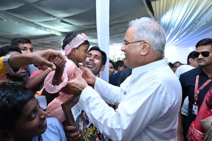 छत्तीसगढ़/रायपुर :- ग्राम जगन्नाथपुर की रहने वाली 3 साल की बच्ची वैष्णवी यादव को जब भेंट मुलाकात कार्यक्रम के दौरान मुख्यमंत्री भूपेश बघेल स्वयं इस बच्ची के पास आए और उसे पहचानते हुए कहा, अच्छा यही है वैष्णवी। उन्होंने बच्ची के परिजनों से बातचीत भी की और वैष्णवी द्वारा दिए गए फ्रेम तोहफे को स्वीकार किया। वैष्णवी अपने “कका” से मिलने के इंतजार में काफी देर तक बैठी हुई थी। कका से मिलने के लिए भीड़ इतनी थी कि लोग धक्का-मुक्की कर रहे थे। ऐसे में वह निराश होकर रोने भी लगी थी, जिसे देखते हुए कका ने तत्काल उसे दुलारते हुए उनके पिता दीपक यादव की गोद से उठाकर अपनी गोद में ले लिया और उसे दुलार किया । इस दौरान मुख्यमंत्री की नजर वैष्णवी की हथेली पर पड़ी, जिस पर मेहंदी सजी थी, जिस पर लिखा था मोर मयारू कका भूपेश बघेल। मेहंदी देखकर उन्होंने कहा- वाह! बढ़िया मेहंदी सजाई हो। मोर से बिकट मया करथस का नोनी? यह सुनकर आसपास खड़े लोग ठहाके मारकर हंस पड़े।