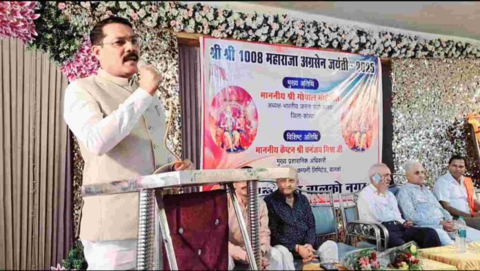 छत्तीसगढ़/कोरबा :- अग्रवाल सभा कटघोरा व बालकोनगर द्वारा बड़े हर्षोल्लास और धूमधाम के साथ श्री श्री 1008 महाराजा अग्रसेन जयंती समारोह का आयोजन किया गया। इस अवसर पर भारतीय जनता पार्टी जिला कोरबा के ऊर्जावान जिलाध्यक्ष आदरणीय श्री गोपाल मोदी जी मुख्य अतिथि के रूप में शामिल हुए, जहां अग्रवाल समाज के लोगों द्वारा श्री मोदी का आत्मीय रूप से स्वागत किया गया। इस समारोह मे श्री गोपाल मोदी ने महाराजा श्री अग्रसेन जी की प्रतिमा पर माल्याअर्पण और पूजन पश्चात कार्यक्रम का शुभारंभ किया गया। अग्रवाल सभा कटघोरा द्वारा मुख्य अतिथि श्री गोपाल मोदी और विशिष्ट अतिथि श्री योगेश जैन का शाल श्रीफल भेंटकर सम्मानित किया गया। आयोजित किए गए विभिन्न प्रतियोगिता में प्रतिभागीयो को पुरस्कार का वितरण किया गया।समारोह में उपस्थित अतिथियों ने महाराजा अग्रसेन जी के आदर्शों, सिद्धांतों और त्याग-बलिदान की परंपरा पर प्रकाश डाला। समाज में एकता, सहयोग और सेवा भाव को जीवन का मूलमंत्र बताते हुए सभी ने अग्रसेन जी को युगपुरुष करार दिया।