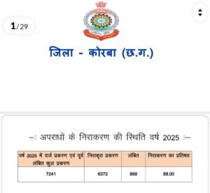 छत्तीसगढ़/कोरबा :- जिले में कानून-व्यवस्था को मजबूत करने के उद्देश्य से कोरबा पुलिस द्वारा वर्ष 2025 में संगठित अपराध, नशा तस्करी, पॉक्सो अपराध, यातायात उल्लंघन एवं सड़क दुर्घटनाओं के विरुद्ध व्यापक और प्रभावी कार्रवाई की गई। इसकी जानकारी पुलिस अधीक्षक सिद्धार्थ तिवारी ने प्रेस कॉन्फ्रेंस के दौरान दी।