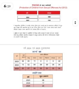 बच्चों के विरुद्ध अपराधों पर कठोर रुख अपनाते हुए वर्ष 2024 में 189 तथा वर्ष 2025 में 132 प्रकरणों में कार्रवाई की गई, जिससे ऐसे अपराधों में कमी दर्ज की गई है।