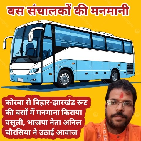 छत्तीसगढ़/कोरबा :- कोरबा से झारखंड और बिहार जाने वाली बसों में यात्रियों से तय दर से अधिक किराया वसूले जाने का मामला सामने आया है। भाजपा नेता एवं विधि प्रकोष्ठ छत्तीसगढ़ के प्रदेश कार्यसमिति सदस्य अनिल चौरसिया ने इस संबंध में कलेक्टर एवं जिला परिवहन अधिकारी को शिकायत पत्र सौंपते हुए बस मालिकों के खिलाफ सख्त कार्रवाई की मांग की है।