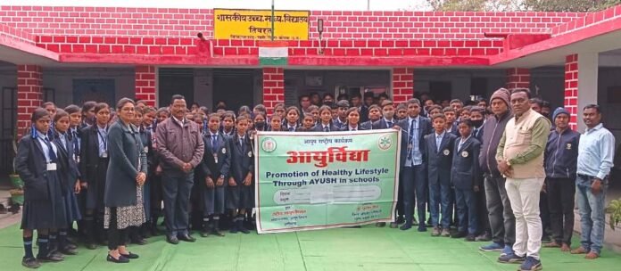 छत्तीसगढ़/कोरबा :- संचालक आयुष छत्तीसगढ़ शासन और जिला आयुर्वेद अधिकारी डॉ. प्रदीप कुमार जैन के मार्गदर्शन में ब्लॉक संयोजक डॉ. जी. आर. प्रभुवा द्वारा आज शासकीय उच्चतर माध्यमिक शाला तिवरता में आयुर्विद्या का राष्ट्रीय कार्यक्रम रखा गया। कार्यक्रम में स्कूली छात्र-छात्राओं को आयुर्वेद की जानकारी देते हुए दिनचर्या, ऋतुचर्या, आहार-विहार, स्वक्ष्ट सुमन के माध्यम से हाथ धोने की विधि बताई गई। साथ ही उनका प्रकृति एवं स्वास्थ्य परीक्षण कर ऊंचाई और वजन लिया गया। इस दौरान विद्यार्थियों को योगाभ्यास कराया गया एवं औषधालय भ्रमण कराकर जड़ी बूटियों की पहचान कराई गई तथा मौसमी बीमारियों से बचाव के बारे में भी जानकारी दी गई। कार्यक्रम में मुख्य रूप से डॉ. स्मृति चंद्राकर, डॉ. डी. के. मुदली, स्कूल के प्राचार्य जे. एल. राज सहित सभी शिक्षक शिक्षिकाएं एवं छात्र-छात्राएं उपस्थित थे।