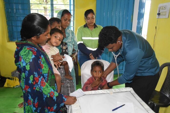 छत्तीसगढ़/कोरबा-बालकोनगर :-  वेदांता समूह की कंपनी भारत एल्यूमिनियम कंपनी लिमिटेड (बालको) ने श्री सत्य साई संजीवनी अस्पताल, रायपुर के सहयोग से सोनपुरी के आंगनवाड़ी केंद्र में निःशुल्क स्वास्थ्य जांच शिविर-जन्मजात हृदय रोग के लिए आयोजित किया गया। समुदाय में बच्चों के हृदय रोग संबंधित स्वास्थ्य जागरूकता को बढ़ावा देने के लिए शिविर में 0-14 वर्ष के बच्चों की निःशुल्क जांच और दवाईंया दी गई। शिविर में लगभग 216 बच्चों का प्राथमिक एवं हृदय संबंधित जांच किया गया।