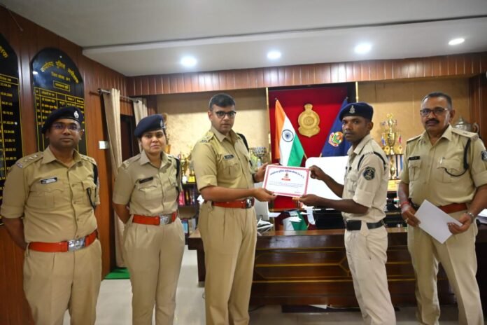 इस उत्कृष्ट कार्य करने के लिए पुलिस अधीक्षक के द्वारा निरीक्षक उषा सोंधिया, प्रधान आरक्षक 215 ओम प्रकाश डिक्सेना, डायल 112 आरक्षक 895 सुरेंद्र कंवर, 50 अनिल पोरते, 850 मानस मनी पैकरा, 760 अशोक खरे को प्रशस्ति पत्र और नगद ईनाम दिया गया।