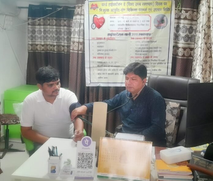 छत्तीसगढ़/कोरबा :- 17 मई वर्ल्ड हाइपरटेंशन डे (विश्व उच्चरक्तचाप दिवस) पर लायंस क्लब कोरबा एवरेस्ट एवं आयुष मेडिकल एसोसिएशन के संयुक्त तत्वाधान में दिनाँक 17 मई 2025 शनिवार को पतंजलि चिकित्सालय, श्री शिव औषधालय दुकान क्रमांक 10, 11 महानदी काम्प्लेक्स निहारिका रोड कोरबा छत्तीसगढ में आयोजित विशेष आयुर्वेद-योग चिकित्सा परामर्श एवं उपचार शिविर में अंचलवासी लाभान्वित हुये।शिविर में विशेष रूप से अपनी चिकित्सकीय सेवायें प्रदान करने वाले लायंस क्लब कोरबा एवरेस्ट के सचिव, छत्तीसगढ़ के सुप्रसिद्ध अनुभवी आयुर्वेद चिकित्सा विशेषज्ञ नाड़ीवैद्य डॉ.नागेंद्र नारायण शर्मा ने बताया की जंकफूड व पित्तवर्धक आहार के ज्यादा प्रयोग से लोगों में उच्चरक्तचाप एवं मधुमेह की बीमारी बढ़ती जा रही है। उनमे भी बच्चे और युवा वर्ग में भी इस तरह के लाइफ स्टाइल जनित रोगों का बढ़ना चिंता का विषय है। इससे बचाव हेतु जंकफूड एवं पित्तवर्धक आहार से परहेज करना अति आवश्यक है, तभी बच्चे और हमारी युवापीढ़ी इन गंभीर रोगों से बच सकती है। डॉ.नागेंद्र शर्मा ने बताया कि सभी लोग अपनी जीवनशैली में कुछ सकारात्मक परिवर्तन कर इन रोगों से आसानी से बच सकते हैं। जैसे व्यक्ति को अपनी दिनचर्या में शारिरिक परिश्रम को बढ़ावा देने की आवश्यकता है। जैसे घर के छोटे मोटे कार्यों को स्वयं करना, सुबह व शाम को पैदल चलना, व्यायाम एवं योग करना, बाइक, कार आदि के स्थान पर सायकिल का प्रयोग करना, पिज्जा, बर्गर, चिप्स, कोल्डड्रिक्स जैसे जंकफूड आदि से दूर रहकर, बच्चों को मोबाईल-कम्प्यूटर में गेम के स्थान पर पारंपरिक शारीरिक खेलकूद के लिए प्रेरित कर, छोटी-छोटी आदतों में परिवर्तन कर इन रोगों से सुरक्षा एवं बचाव किया जा सकता है।शिविर में ब्लड प्रेशर तथा रक्त शर्करा के स्तर की निशुल्क जांच कर उससे संबंधित परीक्षित औषधि भी निशुल्क प्रदान की गई तथा उच्चरक्तचाप एवं समस्त प्रकार के पित्तज रोगों के लिये उपयोगी शीतसुधा शरबत भी निशुल्क पिलाया गया। शिविर में चिकित्सक नाड़ीवैद्य डॉ.नागेन्द्र नारायण शर्मा, श्री शिव औषधालय की संचालिका श्रीमती प्रतिभा शर्मा, लायंस क्लब कोरबा एवरेस्ट के संरक्षक लायन सुधीर सक्सेना, अध्यक्ष लायन शिव जायसवाल, कोषाध्यक्ष लायन गजेंद्र राठौड़, सदस्य लायन नेत्रनन्दन साहू, लायन अश्वनी बुनकर, लायन कमल धारिया के अलावा कवि रंजन दास, देवबली कुंभकार, सिद्धराम शाहनी, राकेश इस्पात, चक्रपाणि पांडेय, कमला कुंभकार, ऋतु कंवर एवं बसंती कंवर ने विशेष रूप से उपस्थित होकर अपना महत्वपूर्ण योगदान दिया।