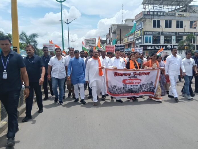 छत्तीसगढ़/कोरबा :- स्वतंत्रता की 79वीं वर्षगांठ की पूर्व संध्या पर भारतीय जनता पार्टी, जिला कोरबा (छत्तीसगढ़) के तत्वावधान में आज ‘विभाजन विभीषिका स्मृति दिवस’ श्रद्धा, गंभीरता और राष्ट्रीय एकता के संदेश के साथ मनाया गया। इस अवसर पर ट्रांसपोर्ट नगर चौक से आशीर्वाद प्वाइंट तक एक भव्य मौन जुलूस निकाला गया और आशीर्वाद प्वाइंट पर संगोष्ठी का आयोजन हुआ, जिसमें विभाजन की दर्दनाक स्मृतियों, विस्थापन की पीड़ा और शहीदों के बलिदान को भावपूर्ण श्रद्धांजलि दी गई।