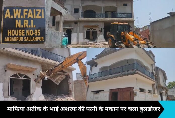 बाहुबली माफिया अतीक अहमद के छोटे भाई खालिद अजीम उर्फ अशरफ के ससुराल वालों द्वारा वक्फ बोर्ड की जमीन पर कब्जा कर बनाए गए मकान पर आज बुलडोजर चला.