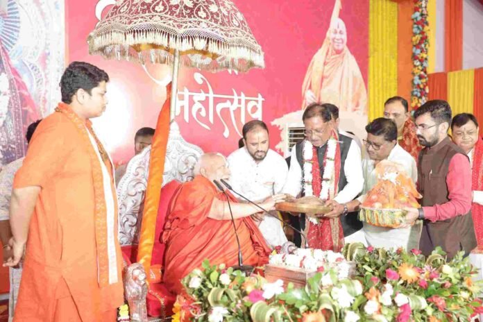 मुख्यमंत्री श्री साय ने बताया कि देश के यशस्वी प्रधानमंत्री श्री नरेन्द्र मोदी के मार्गदर्शन में छत्तीसगढ़ में मोदी की गारंटी को पूरा करने का कार्य तेजी से किया जा रहा है। आने वाले दिनों में हमारा राज्य विकसित छत्तीसगढ़ के रूप में स्थापित होगा। देश के गृह मंत्री श्री अमित शाह के मार्गदर्शन में 31 मार्च 2026 तक देश से नक्सलवाद खत्म करने का ध्येय रखा गया है । प्रदेश में नक्सलवाद को जड़ से खत्म करने की दिशा में लगातार कार्य किया जा रहा है। हमारे जवान बड़े साहस से नक्सलियों का सामना कर रहे है एवं हमें लगातर सफलता मिल रही है। उन्होंने कहा कि बस्तर क्षेत्र में विकास की गंगा बहेगी। उन्होंने कहा कि धर्मांतरण के खिलाफ भी राज्य में कड़े नियम बनाकर कड़ाई के साथ लागू किया जाएगा।उन्होंने बताया कि श्री राम लला दर्शन योजना के माध्यम से राज्य से प्रतिमाह हजारों भक्तों को सरकारी खर्च से अयोध्या धाम में श्री राम के दर्शन का लाभ मिल रहा है। मुख्यमंत्री श्री साय ने जगद्गुरू के अपील पर भवानी मंदिर स्थल का नामकरण कौशल्या धाम करने की घोषणा की।