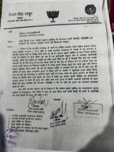 नगर पंचायत अध्यक्ष, भाजपा मंडल अध्यक्ष व जनपद उपाध्यक्ष के संयुक्त हस्ताक्षर से की गई शिकायत