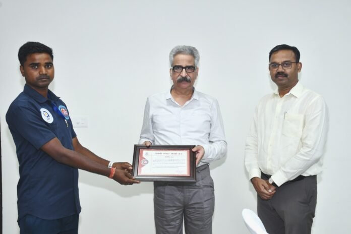 डायल 112 टीम के कर्मचारी आरक्षक 637 बिपिन किशोर खलखो एवं चालक छोटू दास को पुलिस मुख्यालय में पुलिस महानिदेशक श्री अशोक जुनेजा (भा.पु.से.) द्वारा नगद पुरस्कार एवं प्रशस्ति पत्र देकर सम्मानित किया गया, इस अवसर पर अति. पुलिस महानिदेशक श्री प्रदीप गुप्ता, पुलिस अधीक्षक (डायल 112) श्री अविनाश ठाकुर एवं डायल 112 के स्टाफ उपस्थिति रहे।