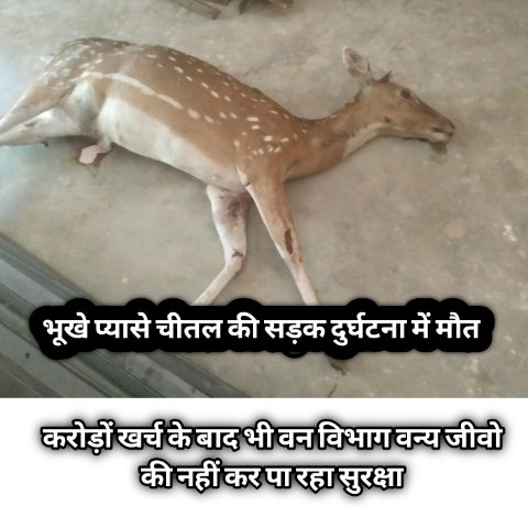 घटित घटना के अंतर्गत पाली में स्थित वन विभाग के विश्राम गृह के समीप फोरलेन सड़क मार्ग पर हुई दुर्घटना में अज्ञात वाहन की चपेट में एक चीतल आ गया। जिससे चीतल की इलाज के दौरान मौत हो गई। जानकारी के अनुसार पाली के निकट दमिया जंगल में बड़ी संख्या में हिरण चीतल का अस्थायी रहवास है। इस जंगल से होकर फोरलेन सड़क बनाए जाने के लिए बड़ी मात्रा में सागौन के घने जंगलों की कटाई हुई है जिससे इन बेजुबान जानवरों के रहवास पर बुरा असर पड़ा है। वर्तमान में गर्मी के मौसम ने दस्तक दे दी है और वन क्षेत्र में जल स्रोत सूखने की कगार पर पहुंच गए हैं। इसी कारण हिरण, चीतल का समूह रिहायशी इलाकों में पानी और चारे की तलाश में पहुंचने लगे है। ऐसे ही एक चीतल पाली फोरलेन सड़क को पार कर वन मंडल के विश्रामगृह हदखोजा तालाब के निकट पहुंचा था जो कि अज्ञात वाहन की चपेट में आकर गंभीर रूप से घायल हो गया। इसकी पशु चिकित्सा विभाग को सूचना दी गई, लेकिन चीतल की जान नहीं बचाई जा सकी। इससे पूर्व भी कई चीतल जंगल से भटककर रिहायशी क्षेत्र में पहुंच कर कुत्तों का शिकार बन जाते हैं। मृत चीतल का अंतिम संस्कार वन विभाग के रेस्ट हाउस में किया गया।