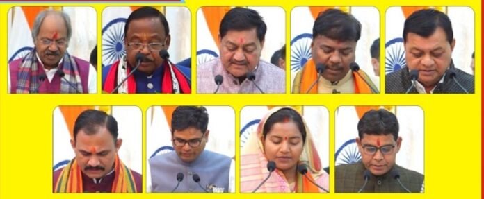 छत्तीसगढ़ रायपुर :- छत्तीसगढ़ में सीएम विष्णुदेव साय के नेतृत्व में 9 विधायकों ने मंत्री पद की शपथ ली। फिलहाल सिर्फ शपथ ली है, मंत्रालय का बंटवारा बाद में किया जाएगा। छत्तीसगढ़ में सीएम विष्णु देव साय को गिन लिया जाए तो अब कुल 12 मंत्री सरकार चलाएंगे। मंत्री पद के बंटवारे में सरगुजा संभाग का दबदबा रहा। सबसे ज्यादा सीटें भी बीजेपी ने यहीं से जीतीं।