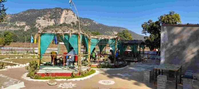 छत्तीसगढ़/कोरबा :- नए वर्ष 2023 का आगाज हो चुका है लोग नए वर्ष 2023 को मनाने के लिए फैमिली के साथ विभिन्न पर्यटन स्थलों सहित अपनी मन पसंदीदा जगहों में जाने के लिए मन बना चुके हैं लेकिन अगर आप कोरबा जिले के सतरेंगा पर्यटन स्थल में नए वर्ष का आनंद लेने फैमिली के साथ जाना चाह रहे हैं तो एक बार सतरेंगा पर्यटन स्थल से कुछ दूरी के पहले ही एक अम्मा की रसोई नामक रेस्टोरेंट का निर्माण हो रहा है जहां आपको टोटल प्राकृतिक चीजों से बनी सामग्रियां देखने को मिलेंगी इस रेस्टोरेंट में खाना खाने के से लेकर चाय तक मिट्टी के बर्तनों में बनाई जाती है यहां प्राकृतिक चीजों से बने कार्टेज भी बनाए गए हैं जो आपको बेहद पसंद आएंगे, जहां कोई आर्टिफिशियल उपकरणों का उपयोग नहीं किया गया है इस जगह में आपको खाने के लिए जंगल के वादियों के बीच पेड़ों के पत्तों से बने पत्तल दोने में खाना दिया जाता है व पत्तल के कप में चाय दी जाती है, इस रेस्टोरेंट के संचालक आदिवासी समुदाय से ताल्लुक रखने वाले शत्रुघ्न सिंह कंवर हैं m.a. पीजीडीसीए की डिग्री के साथ क्लास के टॉपर छात्र के रूप में रहे हैं,