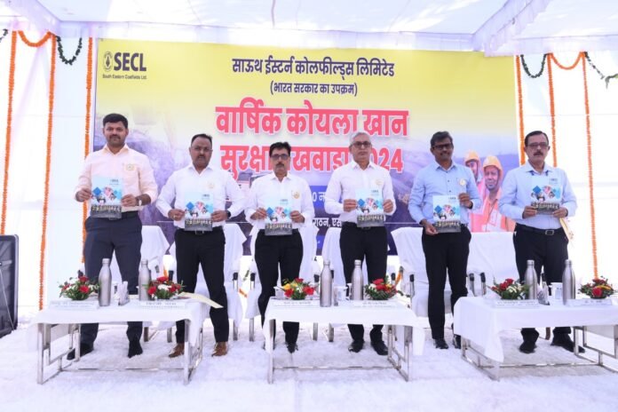 छत्तीसगढ़/बिलासपुर :- दिनांक 18 नवंबर से 30 नवंबर 2024 तक आयोजित वार्षिक कोयला खान सुरक्षा पखवाड़ा 2024 का उद्घाटन दिनांक 18.11.2024 को एसईसीएल मुख्यालय प्रांगण में अध्यक्ष सह प्रबंध निदेशक डॉ. प्रेम सागर मिश्रा ने निदेशक तकनीकी (संचालन) श्री एसएन कापरी, निदेशक तकनीकी (योजना/परियोजना) श्री फ्रैंकलिन जयकुमार, निदेशक (कार्मिक) श्री बिरंची दास, मुख्य सतर्कता अधिकारी श्री हिमांशु जैन, विभिन्न विभागाध्यक्षों, अधिकारियों-कर्मचारियों, विभिन्न श्रमसंघ प्रतिनिधियों की उपस्थिति में सुरक्षा ध्वज फहराकर किया गया।