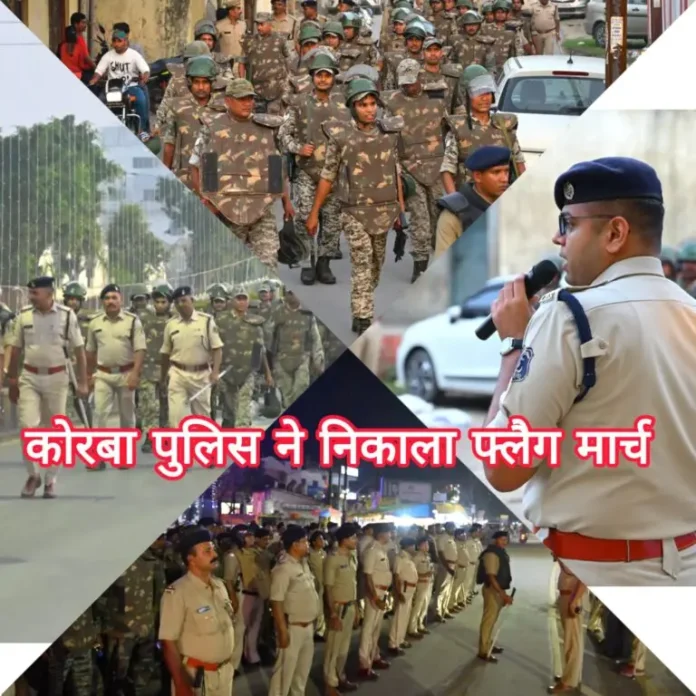 कोरबा शहर में हुए फ्लैग मार्च में कलेक्टर एवं जिला दंडाधिकारी अजीत बसंत, पुलिस अधीक्षक सिद्धार्थ तिवारी, अतिरिक्त जिला दंडाधिकारी नाग, अतिरिक्त पुलिस अधीक्षक यू.बी.एस. चौहान, श्रीमती नेहा वर्मा, एसडीएम श्रीकांत वर्मा, नगर पुलिस अधीक्षक कोरबा भूषण एक्का, नगर पुलिस अधीक्षक दर्री रविन्द्र मीना, हेडक्वार्टर डीएसपी श्रीमती प्रतिभा मरकाम तथा अन्य अधिकारी कर्मचारियों के साथ पुलिस व प्रशासन की टीम व सुरक्षा बलों नेछ शहर के विभिन्न चौक-चौराहों में पैदल फ्लैग मार्च किया गया।