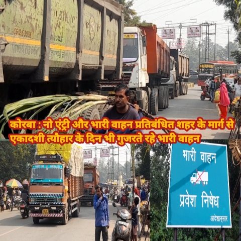 छत्तीसगढ़/कोरबा :- कोरबा शहर के सीएसईबी चौकी से बुधवारी बाजार होते हुए मुड़ापार बाईपास की ओर जाने वाले रास्ते की तस्वीर आज त्यौहार के दिन देखकर अमिताभ बच्चन का गाना अंधा कानून याद आ गया, जी हां वैसे तो इस मार्ग में बीआईपी रोड, घंटाघर रोड, सहित मुड़ापार जाने वाली व्यस्ततम सड़कों के साथ-साथ बुधवारी बाजार है जहां हमेशा भीड़भाड़ रहती है, वही यह बुधवारी बाजार अब सप्ताह मे नहीं यह बाजार हर दिन लगता है, इस मार्ग पर भारी वाहनों पर चलने के लिए प्रतिबंध लगा हुआ है, जहां सुबह से रात तक नो एंट्री लगी रहती है बाकायदे सीएसईबी चौक के पास भारी वाहन निषेध का एक बोर्ड भी लगा हुआ है, इसके साथ साथ आज एकादशी का पर्व भी था बावजूद इसके नो एंट्री और भारी वाहन निषेध के बाद कोयला लोड सहित अन्य वाहनों कि इस सड़क मार्ग से एंट्री होती रही,