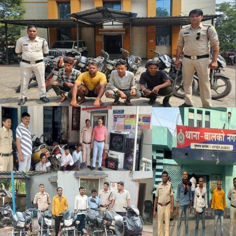कोरबा पुलिस के थाना बालको, थाना दीपका, चौकी सीएसईबी व चौकी मानिकपुर पुलिस टीम की कार्यवाही, आरोपियों के कब्जे से कुल 21 बाईक एवं अन्य घरेलू सामान बरामद किया गया। और भी बाईक बरामद होने की संभावना