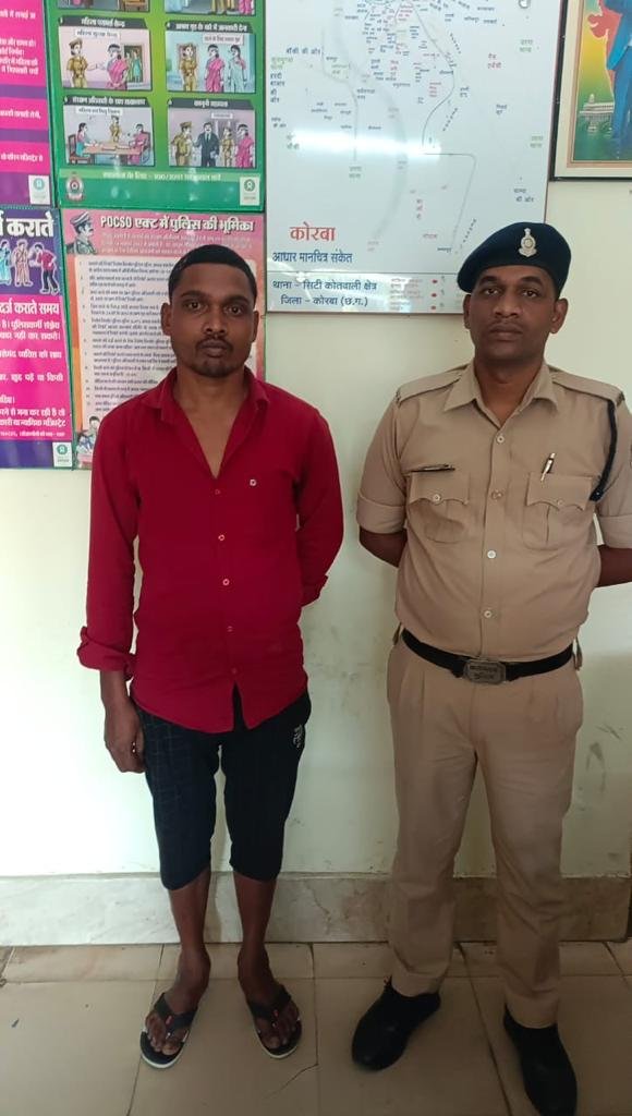 छत्तीसगढ़/कोरबा :- दिनांक 16.11.2022 को युवती थाना कोतवाली उपस्थित आकर लिखित आवेदन पत्र प्रस्तुत कर रिपोर्ट दर्ज करायी कि ग्राम भोडकछार, डुग्गुपारा कोरवा निवासी धरमराज कवर नामक युवक शादी करूंगा कहकर मना करने पर जान से मारने की धमकी देकर मारपीट कर जबरजस्ती कई बार बलात्कार किया है कि रिपोर्ट पर थाना कोतवाली कोरबा में अपराध क्रमांक- 1126/ 2022 धारा 376 (2) (N), 506, 323. भा.द.वि. का अपराध दर्ज किया गया। मामले की गंभीरता को देखते हुये घटना के बारे में पुलिस अधीक्षक महोदय श्री उदय किरण को अवगत कराया गया, पुलिस अधीक्षक महोदय ने आरोपी जल्द गिरफ्तार कर कड़ी कार्यवाही के निर्देश दिये। घटना के बाद अतिरिक्त पुलिस अधीक्षक महोदय अभिषेक वर्मा एवं नगर पुलिस अधीक्षक महोदय कोरवा विश्वदीपक त्रिपाठी के मार्गदर्शन पर नगर निरीक्षक रूपक शर्मा के नेतृत्व में कोतवाली पुलिस द्वारा लगातार आरोपी की पत्ता तलाश की जा रही थी। शातिर आरोपी पुलिस से बचने के लिये लगातार अपना ठिकाना बदल रहा था। पुलिस द्वारा आरोपी की पता तलाश हेतु मुखबीर तैनात किया गया था कि दिनांक 23.04.2023 को जरिये मुखबीर सूचना मिला कि आरोपी धरमराज कंवर ग्राम बड़ेबांका, चौकी चतमा, थाना- पाली, जिला कोरबा में किसी के घर छिपा हुआ है कि सूचना पर वरिष्ठ अधिकारियों से मार्गदर्शन प्राप्त कर नगर निरीक्षक रूपक शर्मा के नेतृत्व में पुलिस टीम रवाना किया गया जो पुलिस टीम द्वारा आरोपी धरमराज कंवर को ग्राम बड़ेबाका, चौकी चैतमा, थाना- पाली, जिला कोरबा से घेराबंदी कर पकड़े जिससे पूछताछ करने पर अपना अपराध स्वीकार करने पर विधिवत हिरासत में लेकर थाना कोतवाली कोरबा लाया गया जहां आरोपी को दिनांक 24.04.2023 को विधिवत गिरफ्तार कर माननीय न्यायालय पेश किया जा रहा है।