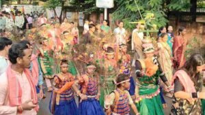 भव्य शोभायात्रा और लोक नृत्य की धूम