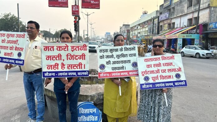 छत्तीसगढ़/कोरबा :- सेवा सप्ताह के पांचवे दिन लायंस क्लब बालको के ऊर्जावान अध्यक्ष लायन रितेश केडिया एवं डिस्ट्रिक्ट के प्रथम वाइस डिस्ट्रिक्ट गवर्नर ला PMJF लायन विजय अग्रवाल एवं जोन चेयरपर्सन ला MJF लायन कैलाश नाथ गुप्ता, सचिव लायन नीतू गुप्ता कोषाध्याय सोनाल शाह लायन अतुल शाह द्वारा शानदार ट्रैफिक जागरूकता एवं कैंसर जागरूकता अभियान चला कर लोगों को जागरूक किया इस अवसर पर प्रोजेक्ट डायरेक्टर लायन कैलाश नाथ गुप्ता ने सभी को साधुवाद दिया इस अवसर पर लायंस क्लब के सभी सम्मानित सदस्यों एवं पदाधिकारियों ने हिस्सा लिया शानदार कार्यक्रम के आयोजन के लिए लायन रितेश केडिया एवं पूरे टीम को डायरेक्टर ने बधाई एवं धन्यवाद ज्ञापित किया ।