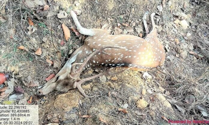 पाली वन परिक्षेत्र के अंतर्गत छिदपानी के जंगल से निकल कर आज सुबह लगभग 8 बजे एक नर चीतल (उम्र -लगभग 5 वर्ष) गांव के तालाब में पानी पीने पहुंचा था जिसे गांव के आवारा कुत्तों के द्वारा दौड़ा कर बुरी तरह घायल कर दिया। नहाने पहुंचे ग्रामीणों के द्वारा नर चीतल को कुत्तों से जब तक बचाया जाता, उसकी मौत हो गई. ग्रामीणों ने कुत्तों को भगा कर इसकी सूचना वन विभाग को दी. जिस पर रेंजर संजय लकड़ा के निर्देश पर वन अमला मौके पर पहुंचा और मृत चीतल को कब्जे में लेकर पशु चिकित्सक पाली के द्वारा पोस्टपार्टम कराने के बाद उसका अंतिम संस्कार कर दिया गया. पाली वन परिक्षेत्र मे बड़ी संख्या में चीतल-हिरन समूह का रहवास है जो गर्मी के मौसम में पहाडी मे पानी चारे की कमी पर आसपास के गांव पहुँचते हैं.और आवारा कुत्तों का शिकार बन जाते हैं या शिकारी द्वारा अथवा सड़क दुर्घटना मे मारे जाते हैं. कोयला खदान खुलने और हाईवे बन जाने के कारण इनका रहवास क्षेत्र सिमट कर रह गया है. वन विभाग इनके पानी चारे की व्यवस्था सहित संरक्षण सुरक्षा के उपाय करने मे अब तक नाकाम रहा है.