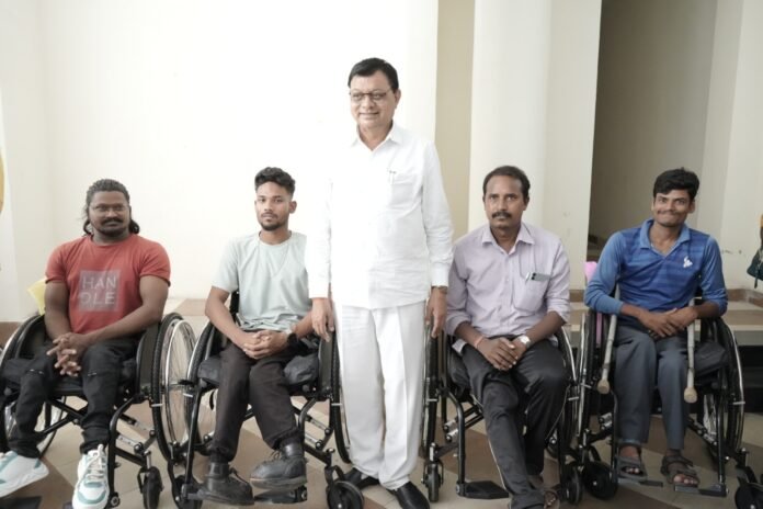 मंत्री लखन लाल देवांगन ने दिव्यांग खिलाड़ियों को व्हील चेयर किया वितरित
