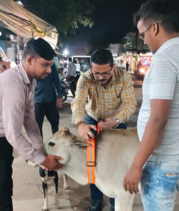 छत्तीसगढ़/कोरबा :- पाली विकासखंड के ग्राम हरदी बाजार क्षेत्र में गौ माता को सड़क हादसों से बचाने युवाओं ने सराहनीय पहल की है। बीते कल दिनांक 11 सितंबर 2025 को ग्राम हरदी बाजार सराई सिंगर के युवा गौ सेवा समिति ने विशेष अभियान चलाकर सड़कों पर घूम रही सैकड़ों गौ माताओं के गले में रेडियम पट्टी बाँधी।