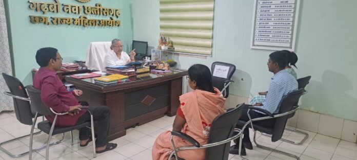 छत्तीसगढ़/रायपुर :- छत्तीसगढ़ राज्य महिला आयोग की अध्यक्ष डॉ. किरणमयी नायक, ने आज छत्तीसगढ़ राज्य महिला आयोग के कार्यालय रायपुर में महिला उत्पीड़न से संबंधित प्रकरणों पर सुनवाई की। आयोग की अध्यक्ष डॉ. किरणमयी नायक की अध्यक्षता में आज 246 वीं सुनवाई हुई। रायपुर जिले में कुल 118 वीं जनसुनवाई।