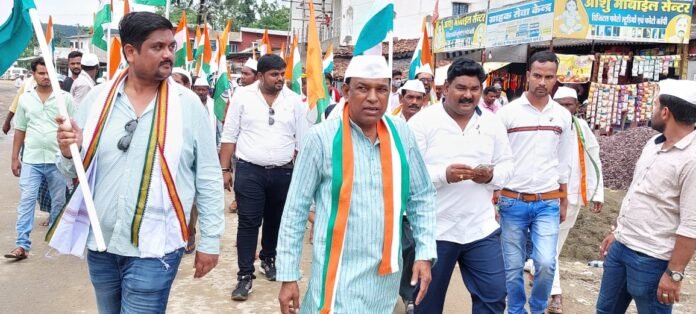छत्तीसगढ़/कोरबा :- आज दिनाँक 13 08 22 को पालीताना खार विधायक एवम मुख्यमंत्री अधोसंरचना के उपाध्यक्ष ( राज्य मंत्री ) दर्जा श्री मोहित राम जी देश एवम प्रदेश कांग्रेस कमेटी संगठन एवम प्रदेश के यशश्वी मुख्यमंत्री भूपेश बघेल जी के निर्देशानुसार आजादी के 75 वे वर्ष पूरा होने पर तथा तिरंगा झंडा को घर घर फहराने का भरी बरसात में गाँव गाँव जाकर पद यात्रा कर लगातार लोंगो को आह्वान करने के लिए पोंडी उपरोड़ा ब्लॉक के ग्राम पंचायत कोरबी से आज का पद यात्रा का प्रारंभ कर ग्राम पंचायत कुलहरिया पाली ग्राम पंचायत दुल्लापुर ग्राम पंचायत कोडगार ग्राम पंचायत पिपरिया ग्राम पंचायत कुम्हारी दर्री ग्राम पंचायत अमली बहरा तथा ग्राम तेलियामार में आज का पदयात्रा का समापन किये। इस पूरे कार्यक्रम में कांग्रेस कार्यकर्ताओं ने बहुत अधिक संख्या में महिला एवम पुरुष कार्यकर्ता गण सम्मिलित हुए। इस पूरे कार्यक्रम में भावेश बनाफर ब्लॉग कांग्रेस कमेटी के अध्यक्ष श्री बच्चन साय कोर्राम जी दिलीप कोर्राम जनपद सदस्य भोला गोस्वामी सांसद प्रतिनिधि अशोक मिश्रा आनंद मित्तल मीडिया प्रभारी आशुतोष मोनू जैसवाल गजेंद्र चंन्द्रा जी जुनैद खान डॉ बिंझवार लेखराम यादव हरनामसिंह कैलाशो देवी संगठा श्रीवास पिंटू राजपूत जी एवम समस्त कांग्रेस के कार्यकर्ता गण मुख्य रूप से उपस्थित रहे।