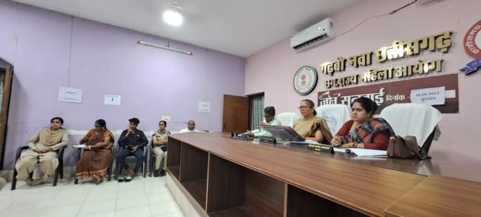छत्तीसगढ़/रायपुर :-  छत्तीसगढ़ राज्य महिला आयोग की अध्यक्ष डॉ. किरणमयी नायक एवं भा सदस्य श्रीमती अर्चना उपाध्याय ने आज छत्तीसगढ़ राज्य महिला आयोग कार्यालय रायपुर में महिला उत्पीड़न से संबंधित प्रकरणों पर जनसुनवाई की । छत्तीसगढ़ राज्य महिला आयोग निकलन की अध्यक्ष डॉ. किरणमयी नायक की अध्यक्षता में आज प्रदेश स्तर की 185 वीं सुनवाई हुई, रायपुर जिले में आयोजित जन सुनवाई में कुल 41 प्रकरणों पर सुनवाई की गई।