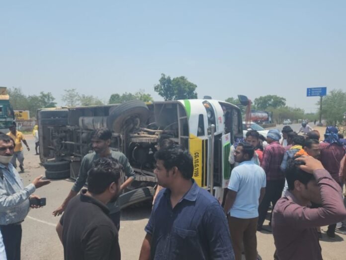 छत्तीसगढ़/कोरबा :- कोरबा जिले के जेंजरा चौक के पास गुरुवार सुबह एक यात्री बस अनियंत्रित होकर बीच सड़क पर पलट गई। हादसे में 12 से ज्यादा लोग घायल हैं, जिनमें से 3 यात्रियों की हालत गंभीर है। घायलों में बच्चे भी शामिल हैं। मामला कटघोरा थाना क्षेत्र का है।