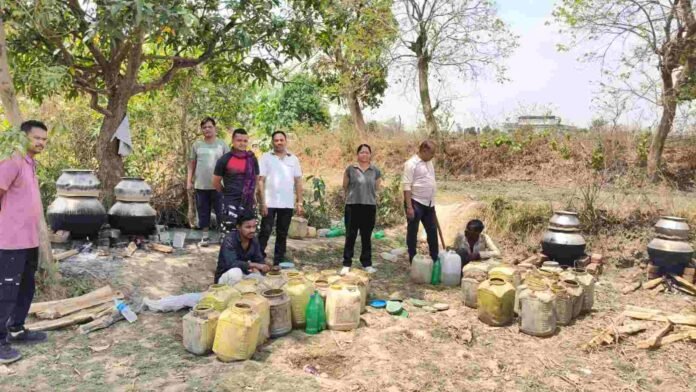 पुलिस से मिली जानकारी के अनुसार, 23 अप्रैल को टीम ने नकटीखार तालाब के ऊपर साइड क्षेत्र में छापा मारा, जहां आरोपी अवैध रूप से महुआ शराब का निर्माण और भंडारण करते पाए गए। मौके पर आवश्यक वैधानिक कार्रवाई करते हुए दोनों आरोपियों को हिरासत में लिया गया।