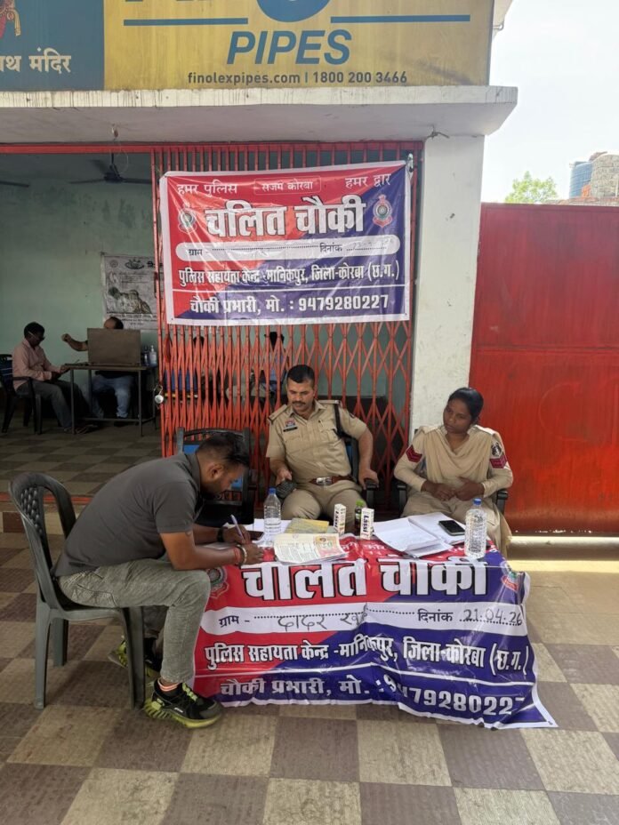 छत्तीसगढ़/कोरबा :- “सजग कोरबा – सतर्क कोरबा” अभियान के तहत कोरबा पुलिस द्वारा आमजन तक सीधे पहुंचकर समस्याओं के समाधान के लिए “चलित थाना” का सफल आयोजन किया गया। पुलिस अधीक्षक के निर्देशन एवं अतिरिक्त पुलिस अधीक्षक व नगर पुलिस अधीक्षक के मार्गदर्शन में यह कार्यक्रम पुलिस सहायता केंद्र मणिकपुर क्षेत्र के दादर में आयोजित हुआ।