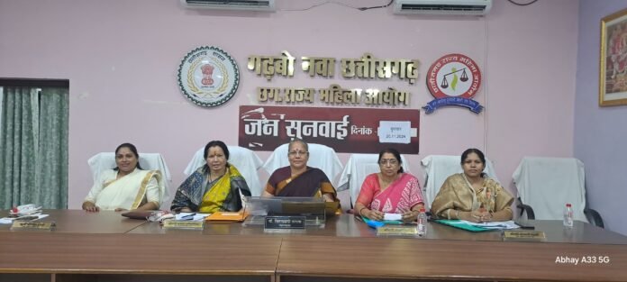 छत्तीसगढ़/रायपुर :- छत्तीसगढ़ राज्य महिला आयोग की अध्यक्ष डॉ. किरणमयी नायक एवं सदस्यगणों श्रीमती सरला कोसरिया, श्रीमती लक्ष्मी वर्मा, श्रीमती प्रियवंदा सिंह जुदेव, श्रीमती ओजस्वी मंडावी, एवं सुश्री दीपिका सोरी ने आज छत्तीसगढ़ राज्य महिला आयोग के कार्यालय रायपुर में महिला उत्पीड़न से संबंधित प्रकरणों पर सुनवाई की। आयोग की अध्यक्ष डॉ. किरणमयी नायक की अध्यक्षता में आज 287 वी. सुनवाई हुई। रायपुर जिले में कुल 138 वी. जनसुनवाई ।