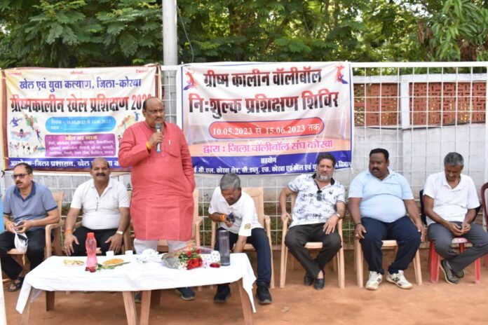 छत्तीसगढ़/कोरबा :- वॉलीबॉल ग्राउंड में संचालित खेल एवं युवा कल्याण वॉलीबॉल प्रशिक्षण शिविर में माननीय छत्तीसगढ़ शासन राजस्व मंत्री श्री जय सिंह अग्रवाल जी ने बच्चों को खेल के प्रति जागरूकता को देखते हुए कहा की ग्रीष्म कालीन शिविर में उपस्थित बच्चों को खेल के प्रति निरंतर अभ्यास के साथ साथ खेलों में उज्जवल भविष्य की कामना की माननीय मंत्री जी एस ई सी एल वॉलीबॉल ग्राउंड में वर्षों से चली आ रही लगातार शिविर की सराहना कि एवं ओपन जिम लगाने की घोषणा की