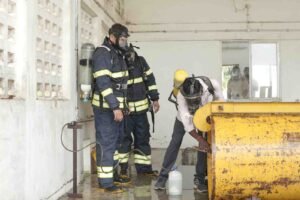 इसी क्रम में कोहड़िया स्थित वाटर ट्रीटमेंट प्लांट में क्लोरीन गैस रिसाव पर आधारित मॉक ड्रील का आयोजन किया गया। क्लोरीन गैस का उपयोग पेयजल शोधन के लिए किया जाता है, किंतु इसका अधिक मात्रा में रिसाव मानव स्वास्थ्य के लिए गंभीर खतरा बन सकता है। अभ्यास में यह स्थिति बनाई गई कि संयंत्र में अचानक क्लोरीन गैस का रिसाव हो गया है। जैसे ही अलार्म बजा, आपदा प्रबंधन टीम ने त्वरित कार्रवाई करते हुए कर्मचारियों और आसपास मौजूद लोगों को सुरक्षित स्थान पर पहुँचाया। गैस रिसाव को नियंत्रित करने के लिए सिलेंडर को बंद करने, वाटर स्प्रे कर प्रभावित क्षेत्र को सील करने और गैस को फैलने से रोकने के उपायों का प्रदर्शन किया गया।