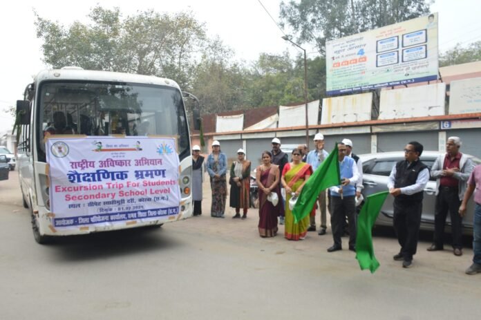छत्तीसगढ़/कोरबा :- राज्य परियोजना कार्यालय समग्र शिक्षा रायपुर के निर्देशानुसार कोरबा जिले में आज सभी विकासखंड में संचालित शासकीय हाई एवं हायर सेकेंडरी विद्यालय में अध्यनरत विद्यार्थियों का शैक्षणिक भ्रमण आयोजित किया गया। कलेक्टर एवं जिला मिशन संचालक समग्र शिक्षा श्री अजीत बसंत के द्वारा गाड़ियों को हरी झंडी दिखाकर रवाना किया गया। बच्चों को शैक्षणिक भ्रमण हेतु सिपेट छुरीकला कोरबा एवं सीएसईबी पावर प्लांट में मशीनों का भ्रमण कराया गया जहां पर छात्र-छात्राओं को मशीनों की कार्य विधि एवं उपयोगिता का ज्ञान प्राप्त हुआ। राष्ट्रीय अविष्कार अभियान अंतर्गत जिले के लगभग 250 विद्यार्थियों को शैक्षणिक भ्रमण के लिए कलेक्टर श्री अजीत वसंत ने शुभकामनाएं दी। इस अवसर पर कलेक्टर ने कहा कि शासन की इस पहल से विद्यालयीन छात्रों को महत्वपूर्ण औद्योगिक संस्थाओं में संचालित गतिविधियों के साथ वैज्ञानिक अविष्कारों की जानकारी मिलेगी। उन्हें किताबी ज्ञान के साथ ही मौके पर मशीनों के माध्यम से किए जाने वाले कार्यों का ज्ञान भी मिलेगा। कलेक्टर ने भ्रमण में जाने वाले विद्यार्थियों से कहा कि संस्थाओं में भ्रमण के दौरान विशेषज्ञों से अपनी उत्सुकताओं का अवश्य निराकरण किया जाना चाहिए और भविष्य में वैज्ञानिक अविष्कार के क्षेत्र में जाने के विषय में सोच-विचार भी किया जाना चाहिए। इस अवसर पर जिला शिक्षा अधिकारी श्री जीपी भारद्वाज एडीपीओ समग्र शिक्षा श्री के जी भारद्वाज एवं डीएमसी श्री मनोज पांडे एवं जिला बाल विज्ञान प्रभारी डॉक्टर श्रीमती फरहाना अली श्री कामता जायसवाल एवं शिक्षा विभाग के अन्य अधिकारी कर्मचारी उपस्थित रहे।