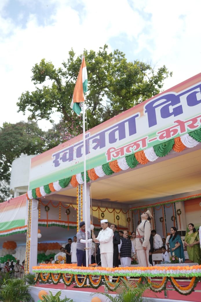 कोरबा में स्वतंत्रता दिवस मुख्य समारोह में मुख्य अतिथि मंत्री श्री लखनलाल देवांगन ने हजारों नागरिकों की उपस्थिति में प्रातः 9 बजे ध्वजारोहण किया और परेड की सलामी ली। इस अवसर पर राष्ट्रगान प्रस्तुत किया गया। सुरक्षा बलों द्वारा हर्ष फायर किया गया और छत्तीसगढ़ सशस्त्र बल, सीआइ्र्रएसएफ, जिला पुलिस बल, सुरक्षा बल,नगर सेना, वन रक्षक, स्काउट गाइड सीनियर-जूनियर डिवीजनों द्वारा आकर्षक मार्च पास्ट प्रस्तुत किया गया। परेड कमांडरों द्वारा परेड रिपोर्ट प्रस्तुत की गई। मुख्य अतिथि ने परेड का निरीक्षण किया। इस दौरान उनके साथ कलेक्टर श्री अजीत वसंत एवं पुलिस अधीक्षक श्री सिद्धार्थ तिवारी उपस्थित थे। उन्होंने अनेकता में एकता के प्रतीक गुब्बारे आकाश में छोड़े। इसके बाद विभिन्न शालाओं के छात्र-छात्राओं द्वारा आकर्षक, मनमोहक देशभक्ति गीतों पर आधारित सांस्कृतिक कार्यक्रमों की प्रस्तुति दी गई। जिसका दर्शकों द्वारा करतल ध्वनि से स्वागत किया गया ओर कार्यक्रमों का आनंद लिया। समारोह में अपने कर्तव्य निर्वहन के दौरान शहीद होने वाले जवानों के परिजनों को सम्मानित किया गया।