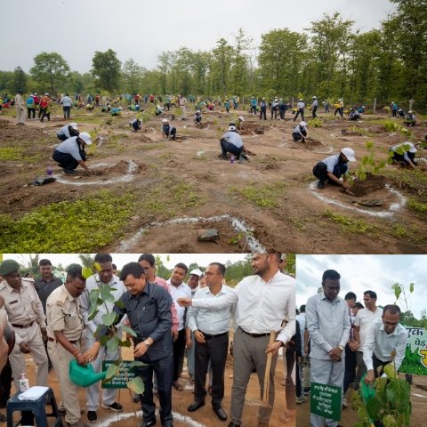 छत्तीसगढ़/कोरबा :- कोरबा जिले के ग्राम भालूसटका में वनमण्डल कोरबा द्वारा आयोजित वन महोत्सव कार्यक्रम में स्कूली छात्र-छात्राओं एवं कर्मचारियों के द्वारा एक साथ एक ही समय पर, एक ही स्थान पर सर्वाधिक 2273 पौधे रोपित करके जिलेवासियों द्वारा गोल्डन बुक ऑफ वर्ल्ड रिकॉर्ड में एक विश्व कीर्तिमान स्थापित किया गया। इस अवसर पर वाणिज्य, उद्योग व्यापार एवं श्रम मंत्री श्री लखन लाल देवांगन ने कहा कि प्रधानमंत्री श्री नरेंद्र मोदी के आव्हान पर एक पेड़ मां के नाम अभियान के तहत सभी नागरिक, ग्रामीण, स्कूली बच्चे पेड़ अवश्य लगाएं। पेड़ लगाने के साथ ही उसके पुष्पित व पल्लवित होने तक उसकी देखभाल एवं सिंचाई की व्यवस्था जरूर करें।