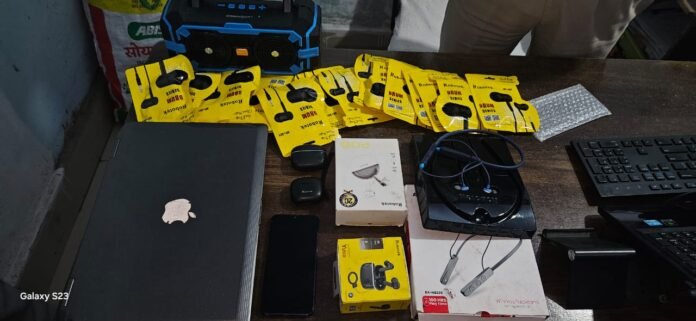 मोबाइल दुकान से चोरी का मशरूका पुलिस ने बरामद, मोबाईल फोन, लैपटॉप सहित बड़ी मात्रा में ईयर फोन बरामद