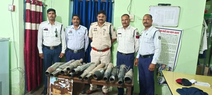 मोडिफाइड साइलेंसर के विरुद्ध यातायात पुलिस की कार्रवाई – 13 प्रकरणों में चालानी कार्रवाई कर साइलेंसर किया जप्त