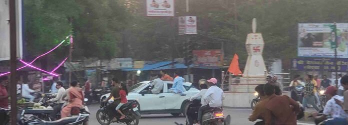 छत्तीसगढ़/कोरबा :- हिंदू नव वर्ष का स्वागत के अवसर पर कोरबा नगर में सीतामढ़ी से लेकर कोसाबाड़ी तक दो अलग-अलग हिंदूवादी संगठनों के द्वारा विशाल शोभायात्रा के आयोजन की तैयारी की गई है। इस आयोजन के बहाने जैसे हुडदंगियों की लॉटरी लग गई है दिन भर यातायात के नियमों को ताक में रखकर यातायात के नियमों की धज्जियां उड़ाते रहे बिना साइलेंसर और बाइक के पटाखो से वातावरण अशांत रहा वही बाइक में तीन से चार युवक बैठकर फर्राटे मारते रहे वही कर में भी युवक स्टंट दिखाते देखे गए, युवकों के इस प्रकार के आतंक से लोग डरे सहमे में रहे,