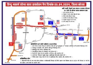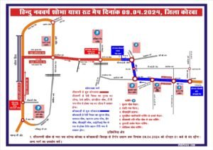 छत्तीसगढ़/कोरबा :- दिनांक 09.04.2024 को शहर में हिन्दू नव वर्ष के मौके पर दो अलग-अलग रैलियों का आयोजन किया गया है जिसमें बड़ी संख्या में दर्शकों एवं श्रद्धालुओं की उपस्थिति रहती है।दोनो शोभायात्राओं को दृष्टिगत रखते हुए पुलिस एवं जिला प्रशासन द्वारा सुरक्षा व्यवस्था के व्यापक इंतजाम किए गये है। शोभायात्रा को हर्षोल्लास एवं शांतिपूर्ण ढंग से सम्पन्न कराने के उद्देष्य से पूरे शहर विशेषकर शोभायात्रा के मार्गो पर सीसीटीव्ही कैमरों एवं वीडियोग्राफी के माध्यम से रैली की आड़ में आसामाजिक तत्वों, जेब कतरों तथा शरीर से जेवर चोरी/ छिनने वालों की निगरानी रखी जाएगी।बदमाशो पर निगाह रखने के लिए शोभायात्रा संचालन समितियों द्वारा अपने वालेंटियर्स के माध्यम से तथा पुलिस द्वारा ऐसे बदमाशो को पहचानने वाले स्पाटर्स लगाकर असामाजिक तत्वों, चोरों, जेबकतरों एवं बदमाशो की पहचान एवं कार्यवाही की जावेगी। पुलिस के द्वारा मैप जारी कर परिवर्तित मार्ग और पार्किंग स्थल की जानकारी दी गई है।