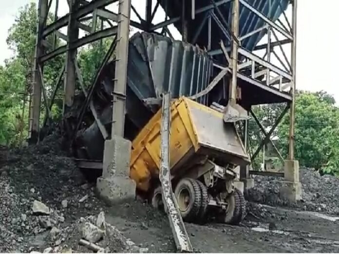 छत्तीसगढ़/कोरबा :- कोरबा एसईसीएल के रजगामार भूमिगत खदान में कोयला लोडिंग के लिए लगा बंकर का एक बड़ा हिस्सा ढह गया । इस घटना में बंकर के नीचे कोयला लोडिंग के लिए खड़ी ट्रेलर के परखच्चे उड़ गये , एसईसीएल कर्मी की इस हादसे में मौत हो गई है । घटनाक्रम रजगामार पुलिस चौकी क्षेत्रांतर्गत एसईसीएल के रजगामार भूमिगत खदान का हैं । बताया जा रहा हैं कि रोज की तरह आज भी भूमिगत खदान से कोयला निकालने के बाद स्टॉक से बंकर के जरिये वाहनों में कोयला लोडिंग किया जा रहा था । कोयला लोडिंग के लिए बंकर के नीचे एक ट्रेलर का चालक गाड़ी लेकर पहुंचा था । ट्रेलर को बंकर के नीचे खड़ा कर चालक कुछ दूर पैदल गया था । इसी दौरान अचानक लोहे के बंकर का एक बड़ा हिस्सा एकाएक ट्रेलर पर गिर गया । बताया जा रहा हैं बंकर का बड़ा हिस्सा गिरने के दौरान श्रमिक राधेश्याम मौके पर ही मौजूद था , जिसका लोहे के स्ट्रक्चर और कोयला के मलबा में दबे होने की सूचना मिलते ही एसईसीएल क्षेत्र में हड़कंप मच गया । एसईसीएल के कोरबा क्षेत्र में आने वाले रजगामार खदान में हुए इस हादसे के बाद आनन फानन में रेस्क्यू आपरेशन शुरू कर मलवा हटाया गया एसईसीएल और पुलिस की मौजूदगी में रेस्क्यू आपरेशन चलाकर शव को निकाल लिया गया है मृतक की पहचान एसईसीएल कर्मी राधेश्याम साहू पंप ऑपरेटर के रूप में की गई है वही इस हादसे के बाद एसईसीएल ने दुख व्यक्त करते हुए एसईसीएल मुख्यालय से मृतक के परिजनों को तत्काल सहायता राशि सहित लगभग 92 लाख रुपए देने की घोषणा की है ।
