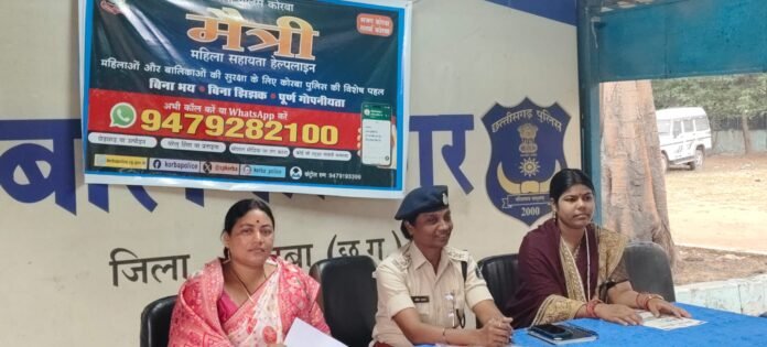 छत्तीसगढ़/कोरबा :- जिले में अपराधों पर प्रभावी नियंत्रण एवं अवैध गतिविधियों पर अंकुश लगाने के उद्देश्य से संचालित “सजग कोरबा, सतर्क कोरबा” अभियान के तहत थाना बालको में मैत्री हेल्पलाइन विषय पर एक विशेष जागरूकता कार्यशाला का आयोजन किया गया। कार्यक्रम का उद्देश्य आमजन, विशेषकर महिलाओं एवं बालिकाओं को सुरक्षा संबंधी जानकारी देकर उन्हें सशक्त बनाना रहा।