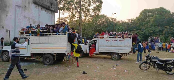 मालवाहक वाहन बने ‘यात्री बस’ — 85 लोग दो पिकअप में, 50 लोग बोलेरो व पिकअप में!